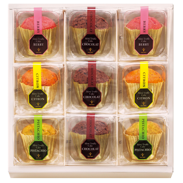 人気のトリュフケーキをミニサイズにし、ベリー、ピスタチオ、レモンのバラエティ豊かな4種類を詰合せました。