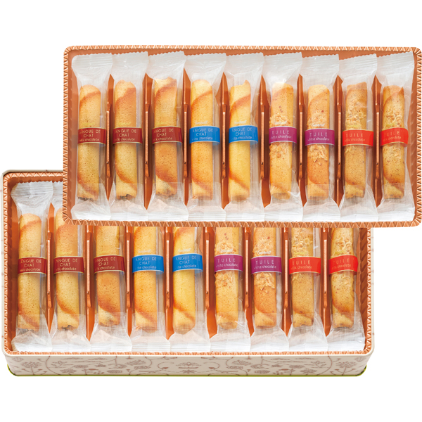 チュイールやラングドシャ生地で、アーモンドミルクチョコレートとホワイトチョコレートをくるり。