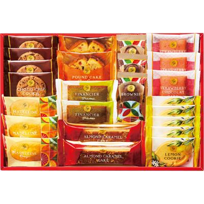 (ブラウンシュガーパウンドケーキ・アーモンドキャラメルケーキ・ピスタチオフィナンシェ)各2、(オレンジマドレーヌ・ストロベリーショコラケーキ・ブラウニー)各3、チョコチップクッキー×4、レモンクッキー×5 【卵・乳成分・小麦】