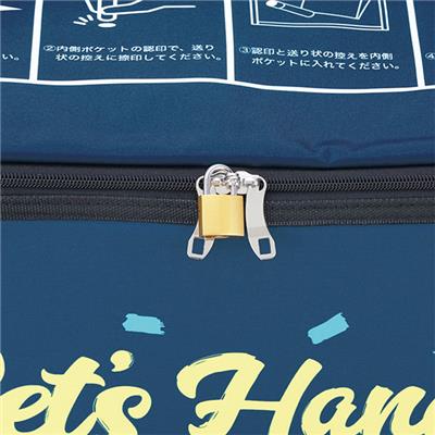 宅配ボックス370×460×340mm:(表生地・裏生地)ポリエステル100%・(側面の中芯)ポリプロピレン・(蓋の詰物)ウレタンフォーム、南京錠:鉄、ダイヤル錠:プラスチック、ワイヤー:鋼