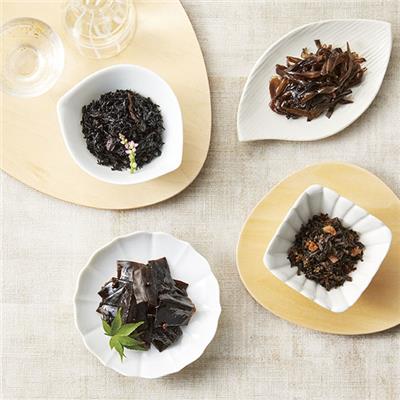 椎茸昆布45g・しその実わかめ45g・山椒昆布45g・椎茸入甘煮わかめ45g・鰹入わかめ昆布50g・わかめ木耳50g各1