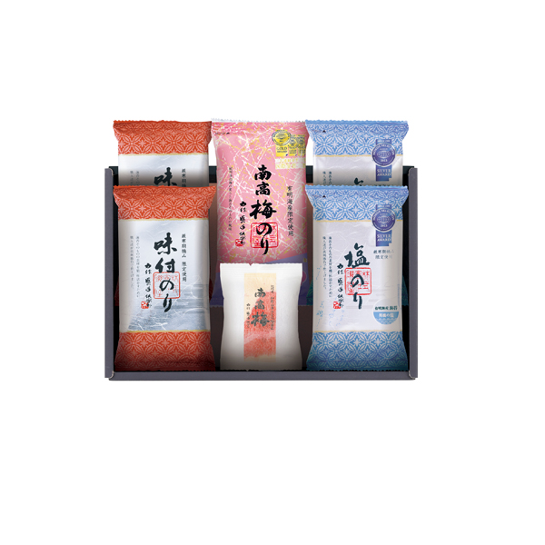 ■商品: | 金賞 有明海産南高梅のり(8切6枚)・銀賞 有明海産塩のり(8切6枚)×2・味付のり(8切6枚)×2・南高梅個包装 【小麦・えび・かに】 |