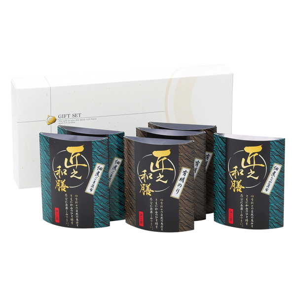 有明のり(12切30枚)×3、ごま昆布佃煮40g×2、ちりめん昆布佃煮40g×1