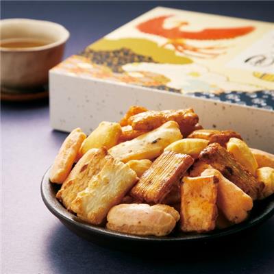 京都・朱雀で生まれたあられ「もちの園」。厳選されたもち米を使用し、すべての工程にこだわり抜いた生地を丹精込めて焼き上げた風味豊かな味わい。南方を守護する神鳥“朱雀”とともにお届けします。