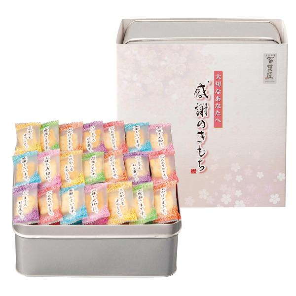 普段言葉では言い表せない「感謝のきもち」を綴りました。中身はソフトに焼き上げた上品な味わいのおかきです。