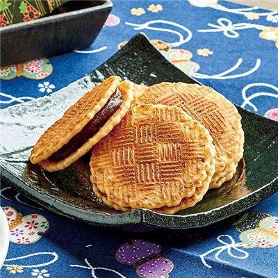 一枚一枚、手づくりで焼き上げたせんべいに、風味豊かな小豆餡をサンドした自信作です。