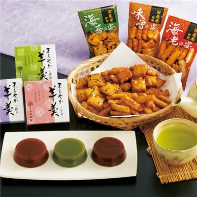 緑茶・あられ・羊かん詰合せ【rm26c038gc048】