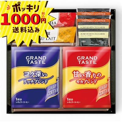 キーコーヒードリップ(リッチブレンド6g・モカブレンド6g各1)、キーコーヒースティック(カフェオレ7g・カフェモカ7.8g各1)、キーコーヒーインスタントコーヒー2g・キーコーヒークリーミーパウダー2.5g各2