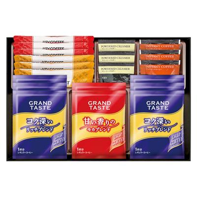 キーコーヒードリップ(リッチブレンド6g×6、モカブレンド6g×2)、キーコーヒースティック(カフェオレ7g・カフェモカ7.8g各3)、キーコーヒーインスタントコーヒー2g・キーコーヒークリーミーパウダー2.5g各3