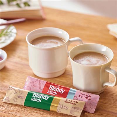 ブレンディスティック(カフェオレ14g×3・カフェオレミルクたっぷり14g×3・カフェオレ甘さなし11.4g×2・ヘーゼルナッツオレ11g×2)、ちょっと贅沢な珈琲店スティックブラック(ブラジルブレンド・モカブレンド)2g×各7 【乳成分】