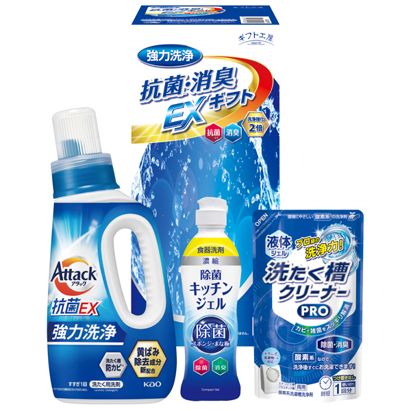 アタック抗菌EX750g・除菌キッチンジェル200mL・液体洗たく槽クリーナーPRO200g