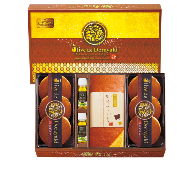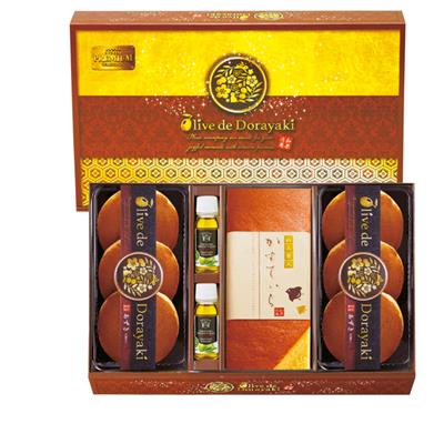 どら焼き(あずき)×6・和三盆糖入かすてぃら(プレーン)1本・オリーブオイル18g×2 【卵・小麦】