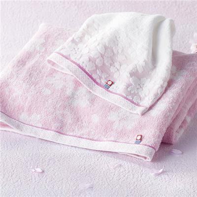 「甘撚り糸」を桜色に染めてタオルを織り上げました。撚り回数が少ない甘撚り糸は通常の糸よりも柔らかく、ボリュームのあるタオルに仕上がります。心地良い風合いをお楽しみください。