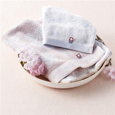 ふわりと舞うサクラを一枚のタオルに閉じ込めました。伝統の技術で織り上げられた今治産のタオルは、使いはじめから吸水性がよく、ふんわりとした風合いが長続きします。