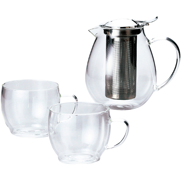 ポット135×100×125mm(580mL)・カップφ80×65mm(150mL)×2:耐熱ガラス、茶こし:ステンレス