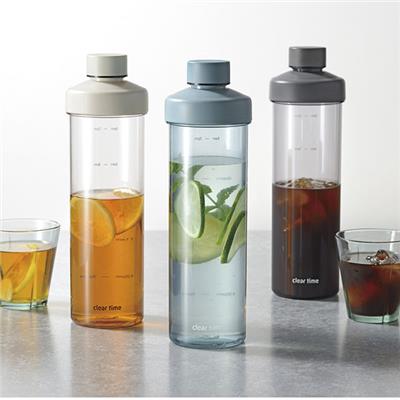 こまめな水分補給で体を整えよう!飲み忘れを防止する時間メモリ付きのクリアボトル。外出先での直飲みはもちろん、冷蔵庫のポケットに入れてお家でピッチャーとしても使える2Wayタイプ。本体の口が広く、フレーバーウォーターも作りやすい。手を入れて奥まで洗いやすく、清潔を保てます。シンプルなデザインなので食卓に並べてもすっと馴染みます。