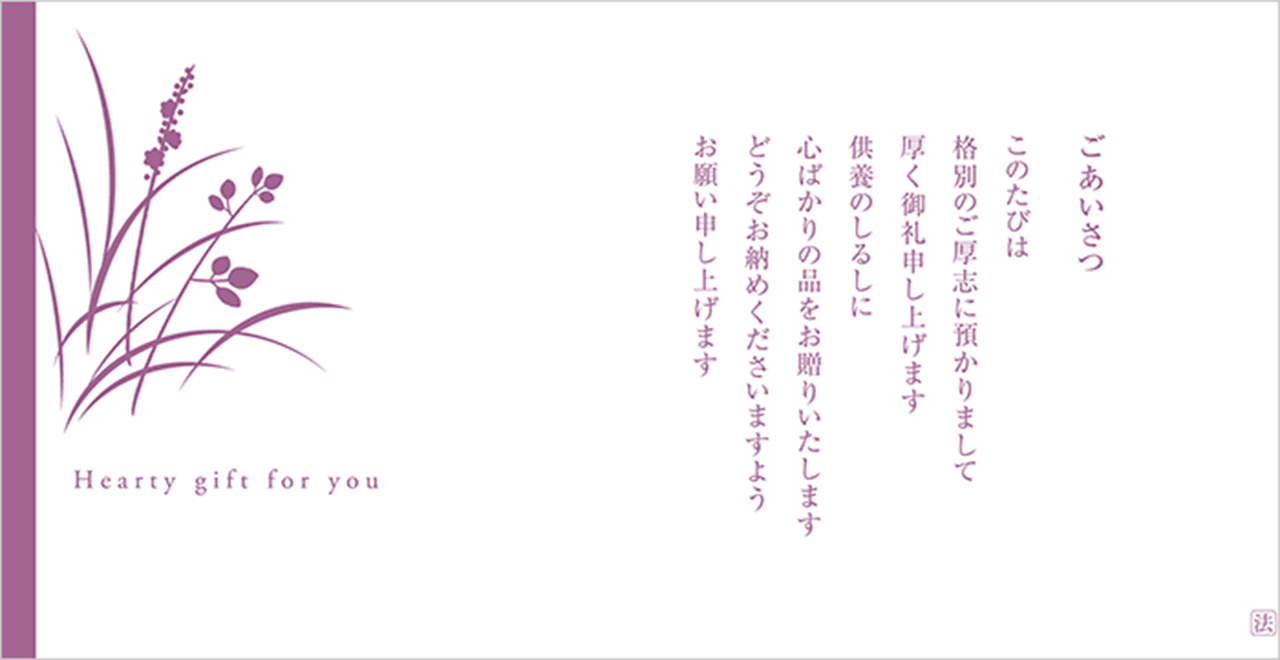 忌明け後1ヶ月以内を目処に行いますが、法要後すぐに贈られる方が多いようです。